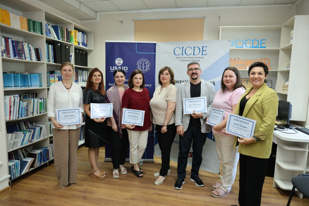 Participanți și participante la instruire au fost reprezentantele CICDE, Doina Bordeianu, Cristina Cucurudza, Arina Kraijdan, Viorica Calugher, Tatiana Grigorița, cât și expertul în domeniul electoral, Pavel Cabacenco, consultant IFES.