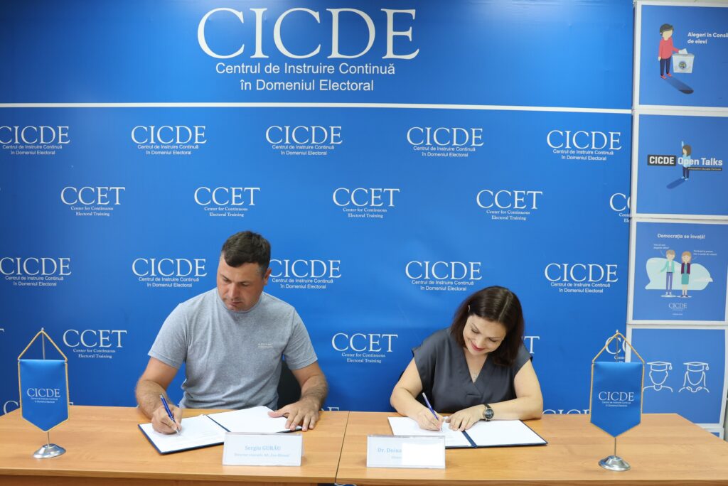 Un acord de parteneriat între Centrul de Instruire Continuă în Domeniul Electoral (CICDE) și Asociația Obștească „Eco-Răzeni” a fost semnat astăzi, 28.08.2024, în scopul cooperării pe principii de parteneriat echitabil, transparență, informare reciprocă și conlucrare deplină privind educația tinerilor.